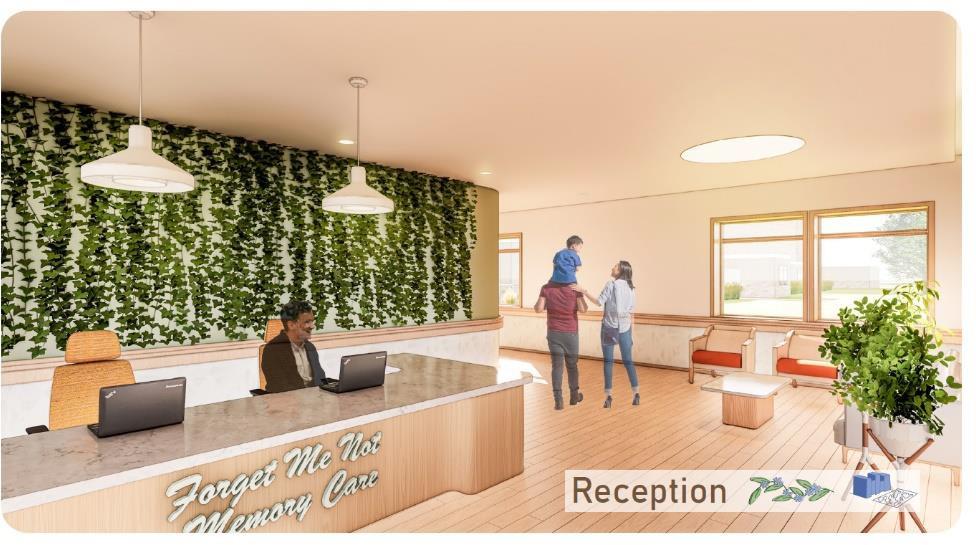 Forget Me Not Memory Care Housing, proposed in Hays, Kansas by four Graduate Students Hailey Krueger, Kaitlyn Meseke, Kenna Hibbs and Rebecca Greene in Interior Architecture Capstone Studio led by Professor Vibhavari Jani, responds to these gaps by reimagining memory care as a holistic, human-centered environment. Traditional memory care housing facilities are often institutional, disorienting, and socially isolating conditions that can exacerbate cognitive decline, anxiety, and depression. In contrast, this project prioritizes dignity, familiarity, and emotional well-being through evidence-based and biophilic design strategies. The design team renovated an old senior care facility to develop a new model for this memory care housing.