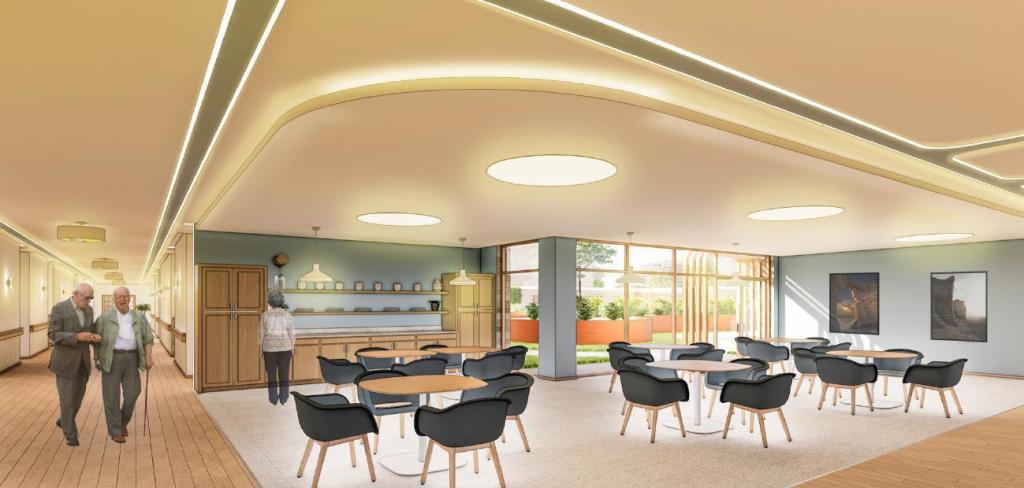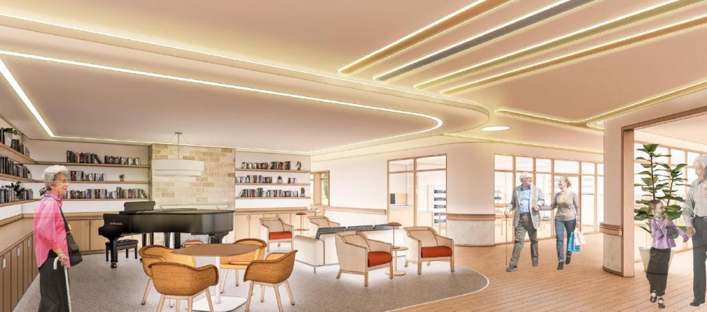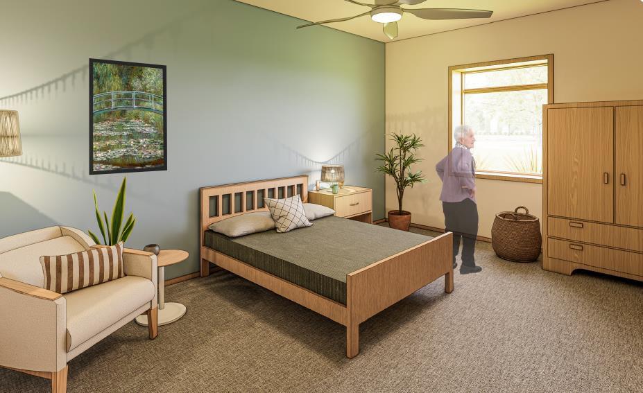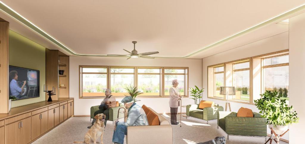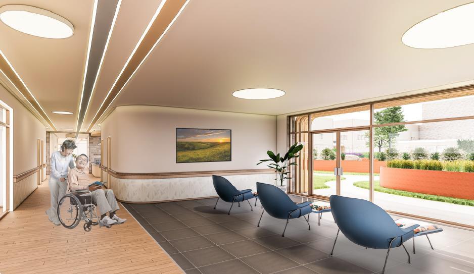 Central to the design is the integration of nature and sustainable strategies, recognizing the restorative impact of natural light, vegetation, and seasonal rhythms on cognitive health. Strong indoor-outdoor connections, access to gardens, and environmentally responsive design elements support both ecological responsibility and therapeutic benefit. Equally