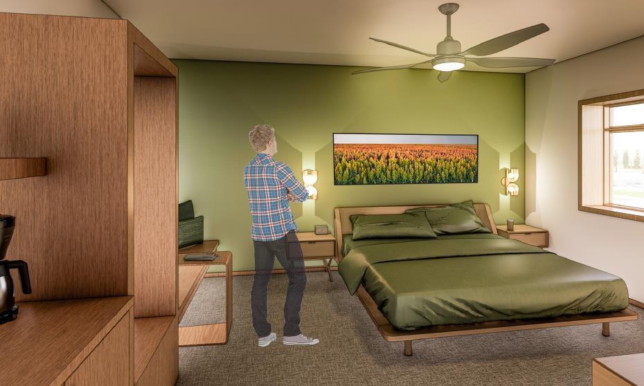 providing on campus family and traveling staff apartments, incorporating local artists’ murals, art on the walls and