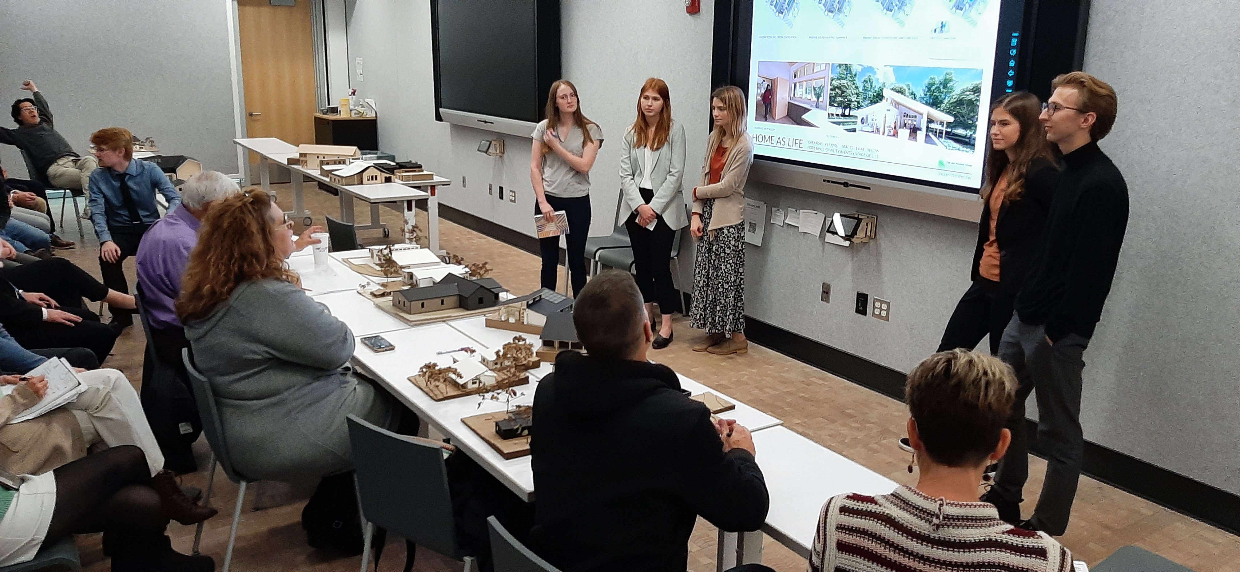 Executive Summary: Friends of Johnson County Developmental supports engaged the Net Positive Studio at K-State to design a home for their first new build. Students developed several designs for a vacant lot in Merriam for the project. Themes including daylight, wellness, and social interaction spaces guided the project. Construction started in the fall of 2024 and the project is expected to be completed in early 2025.