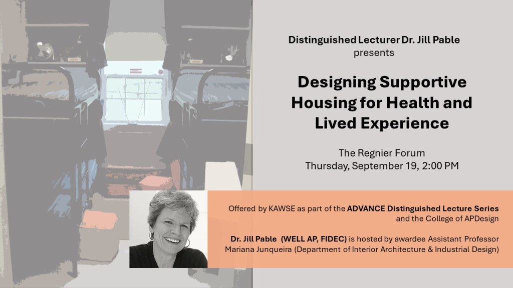 Please consider attending distinguished lecturer Dr. Jill Pable’s lecture: “Designing Supportive Housing for Health and Lived Experience”.