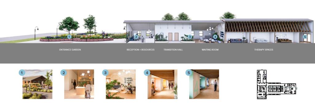 This project introduces a hybrid residential typology that combines wellness-centered care environments with supportive housing. Biophilic design, sensory modulation, and access to nature are embedded to reduce stress and improve mental health outcomes, while layered communal spaces foster peer support and collective resilience. Importantly, the design challenges institutional paradigms by creating non-stigmatizing, community-integrated environments that reflect the diversity and lived experiences of residents. A gradient of spaces—from private residential units to semi-private thresholds and shared community zones—supports autonomy while enabling choice-based social interaction. Decentralized “wellness nodes,” including counseling rooms, sensory retreat spaces, and peer-support hubs, are embedded within residential area to normalize care and reduce stigma. Circulation is reimagined as a therapeutic pathway, incorporating daylight, views to nature, and moments of pause to promote regulation and orientation.