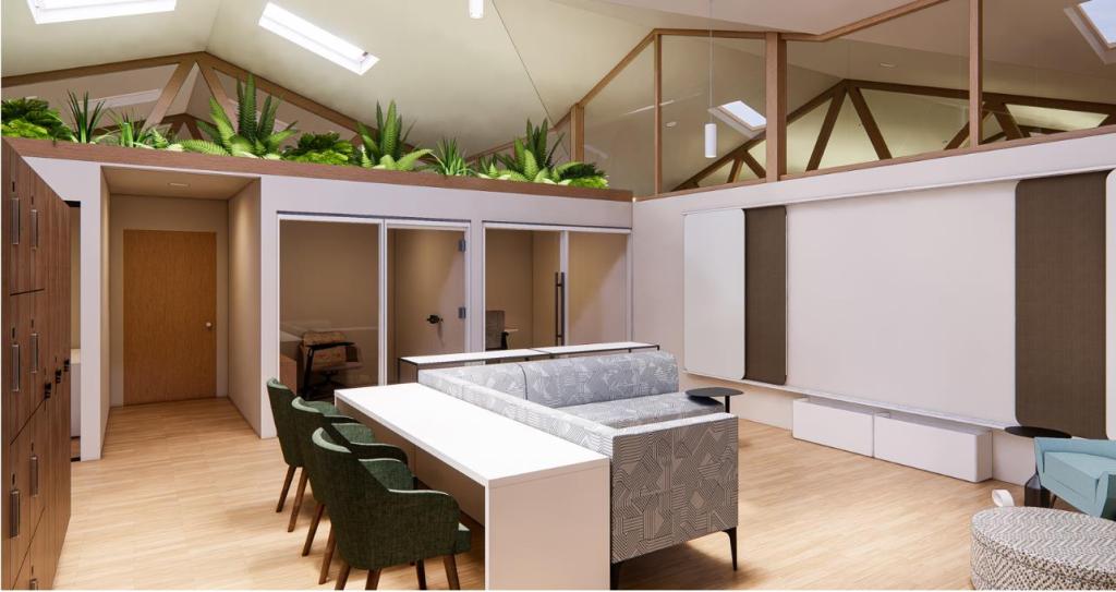 Project Description: In the United States, one in five adults experiences mental illness annually, yet existing care models remain fragmented, reactive, and inequitable—prioritizing short-term stabilization over sustained recovery. Individuals navigating trauma, depression, anxiety, and related conditions often cycle between acute psychiatric facilities and unsupported living environments, revealing a critical systems gap between clinical care and everyday life. This disconnect disproportionately impacts vulnerable populations, especially in rural areas of the United State, reinforcing cycles of instability, isolation, and unmet long-term needs. In her graduate thesis, Interior Architecture student Kenna Hibbs, guided by Professor Vibhavari Jani (Design) and Associate Professor Kutay Guler (Programming), proposes and advances a systems-level intervention by reframing housing as critical mental health infrastructure—integrating psychiatric care, community, and daily living into a cohesive, equity-driven model that bridges clinical care and reintegration. Rather than treating housing as a passive backdrop, Ms. Hibbs’ design positions it as an active agent in healing—supporting autonomy, dignity, and belonging. Grounded in principles of trauma-informed design, the proposal integrates safety, choice, and empowerment through spatial strategies that prioritize privacy, flexibility, and control, alongside opportunities for social connection.